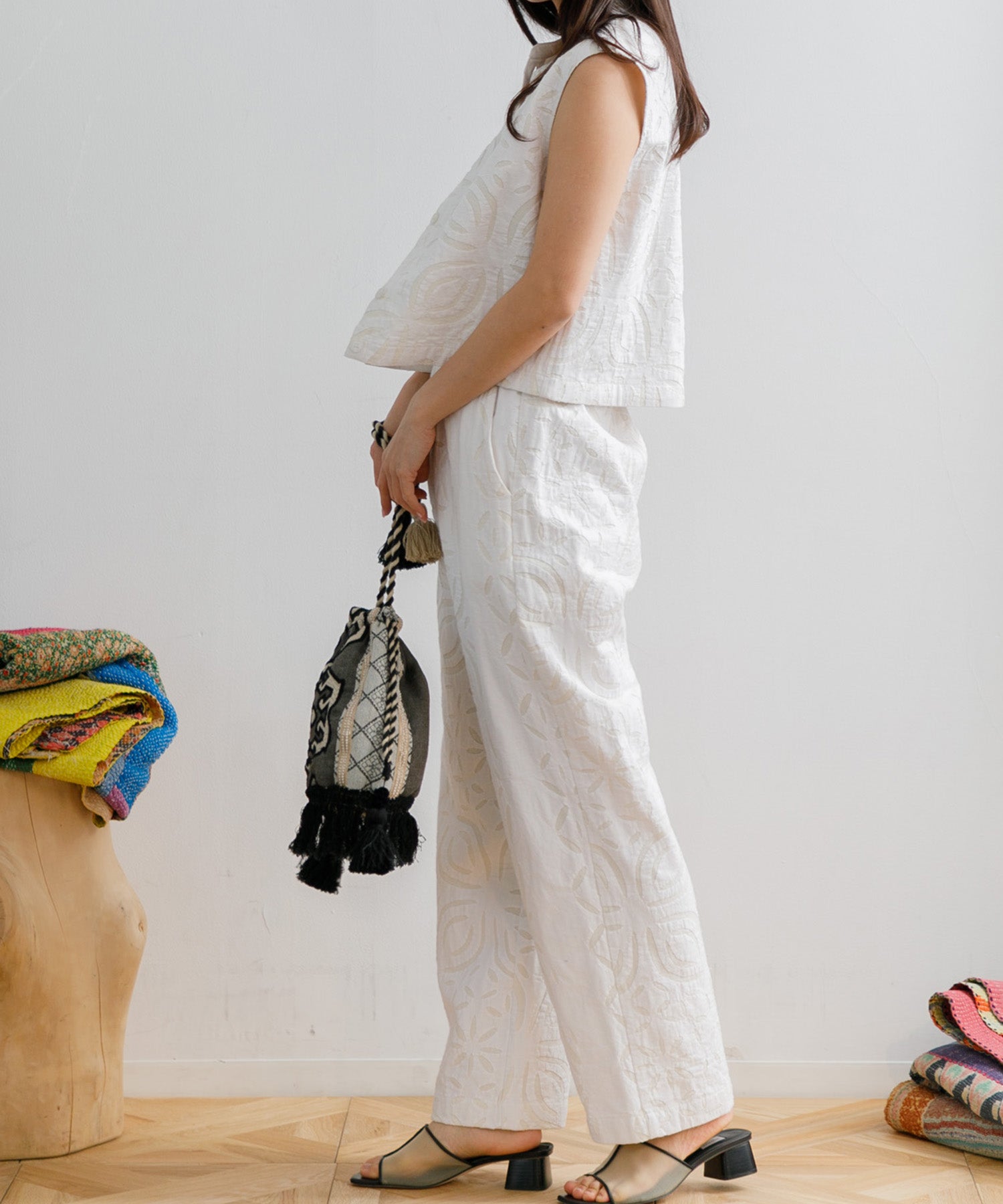2024SSデビュー。鮮やかでポップなカラー、伝統的な技術を現代的に解釈したデザインが特徴です。 洋服とおそろいのバックを展開し、トータルコーディネートを提案することで、ファッションを通じた物語を創造します。