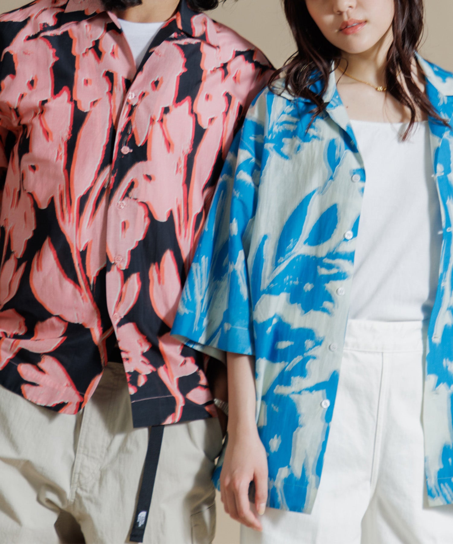 【MEN , WOMEN】LEIN コットンシルクリーフプリントシャツ