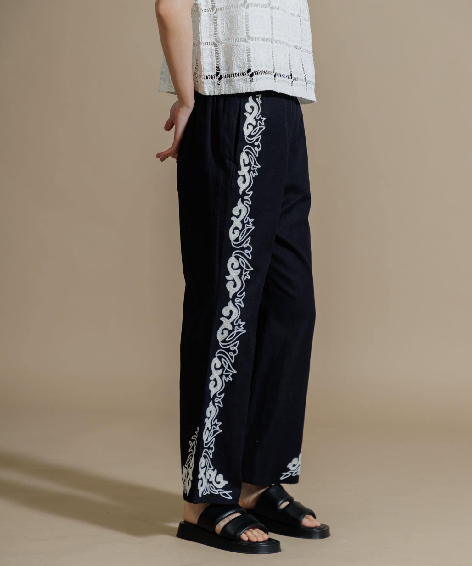 【WOMEN】LEIN / コットンリネンアリ刺繍パンツ