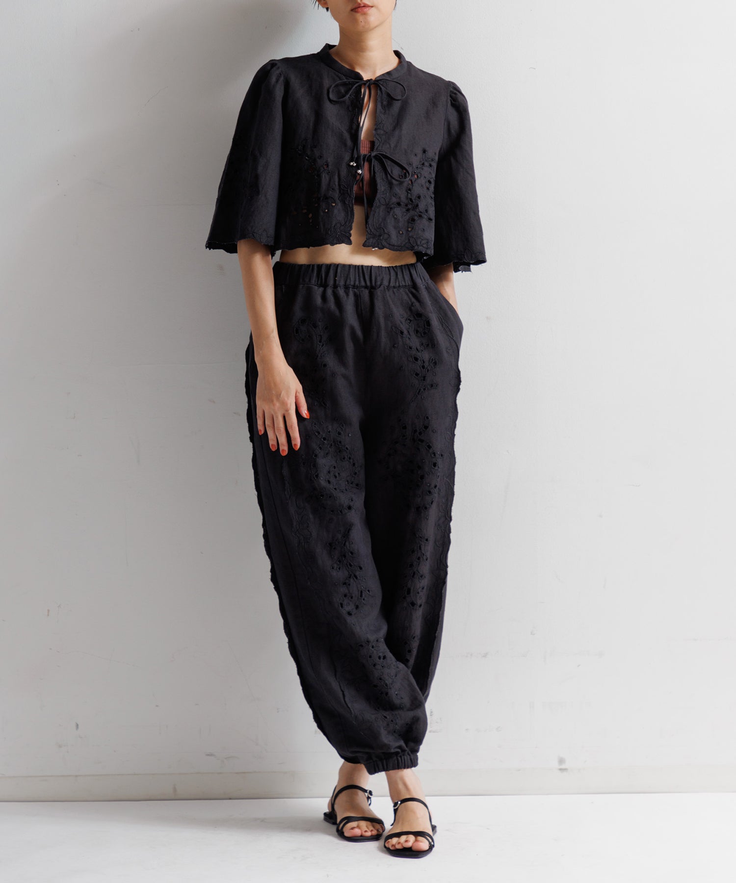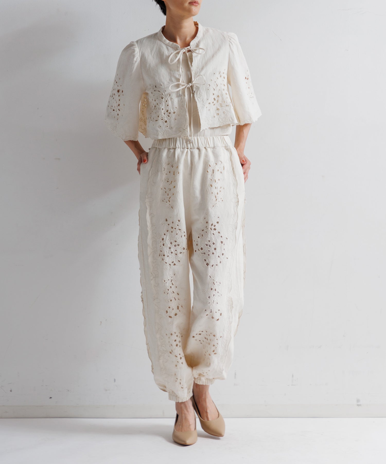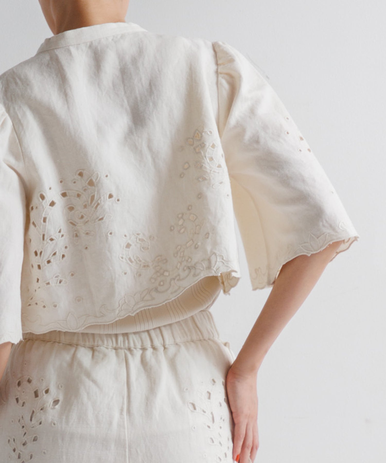 【WOMEN】LEIN コットンリネン切り抜き刺繍シャツ