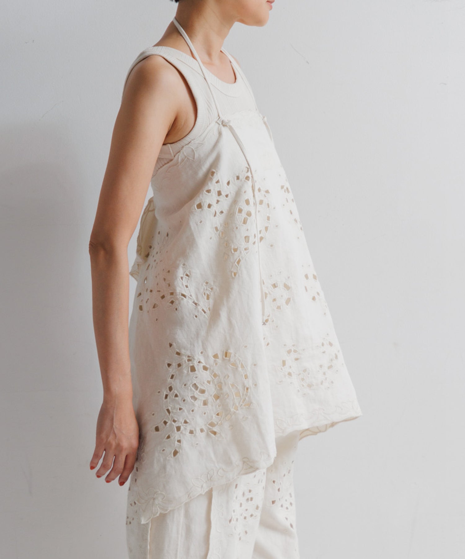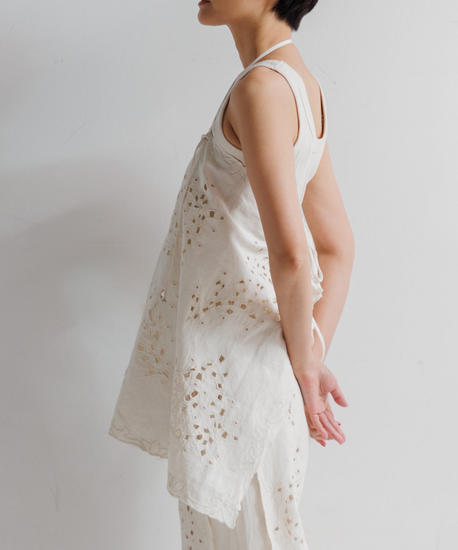 【WOMEN】LEIN コットンリネン切り抜き刺繍2WAYキャミソール