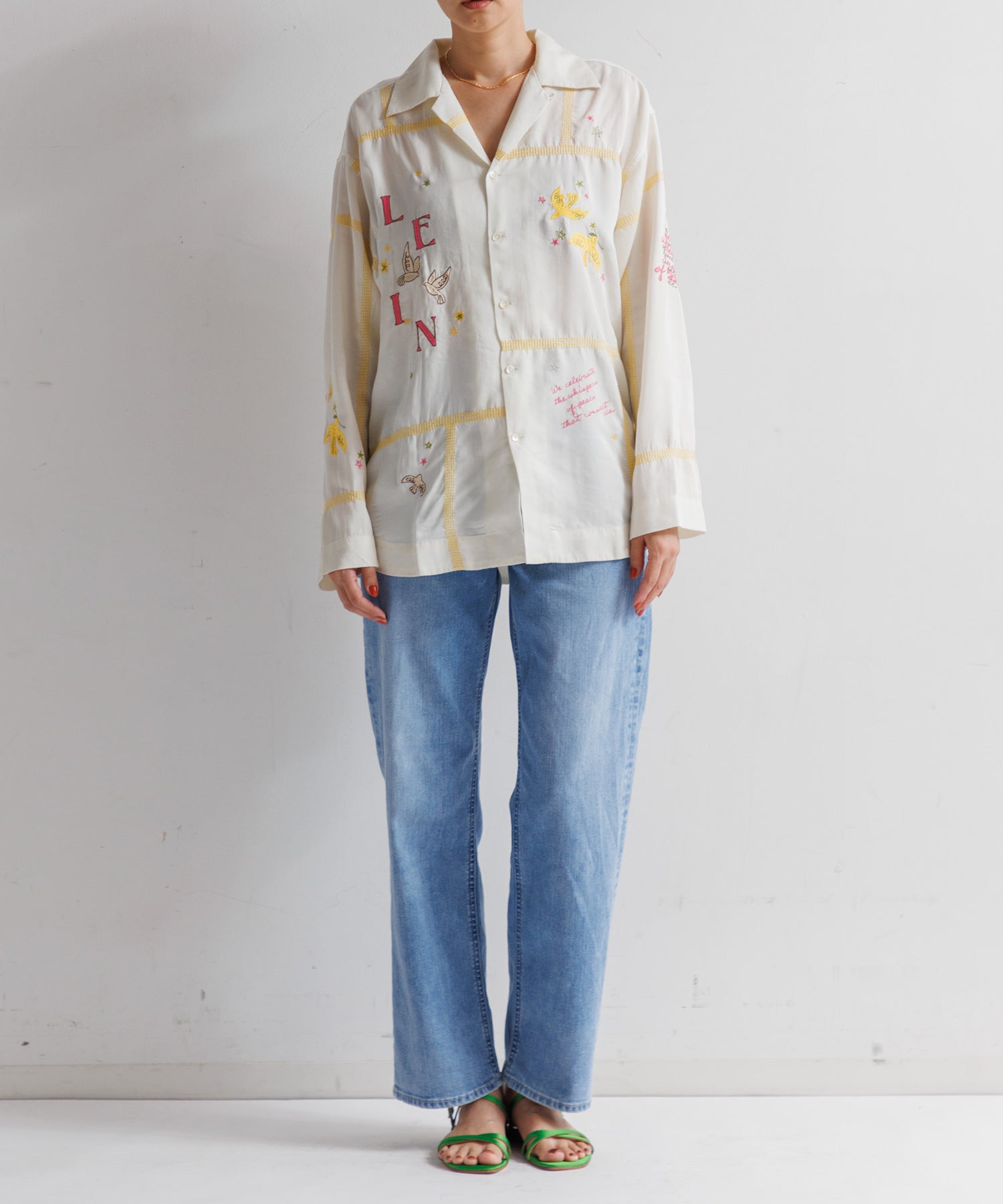 【MEN,WOMEN】LEIN お絵描きパッチワーク刺繍シャツ