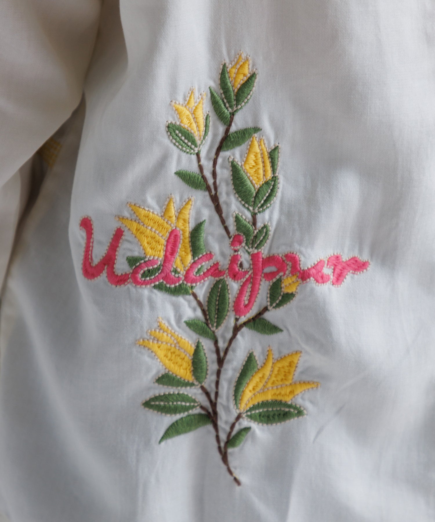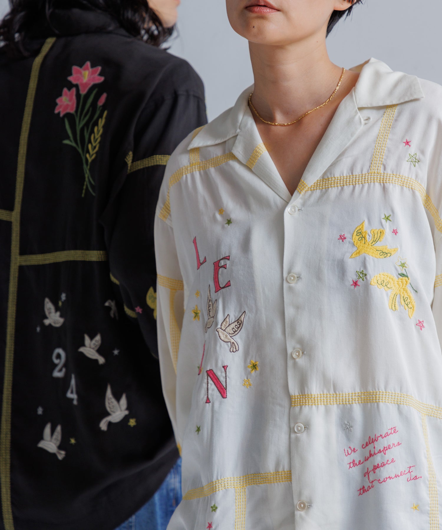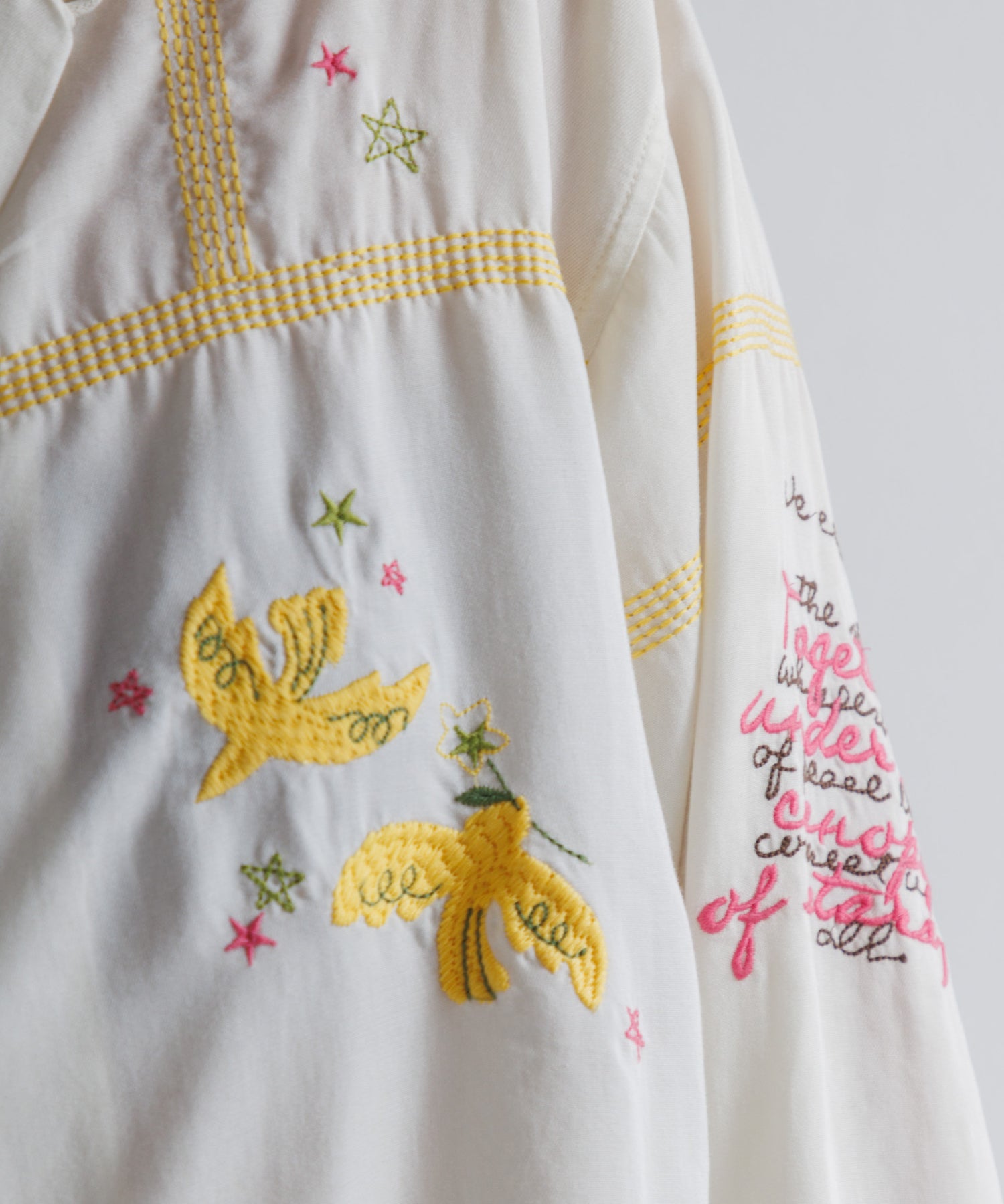 とろみのあるテンセル100%のシャツに、刺繍をふんだんにあしらったシャツ。