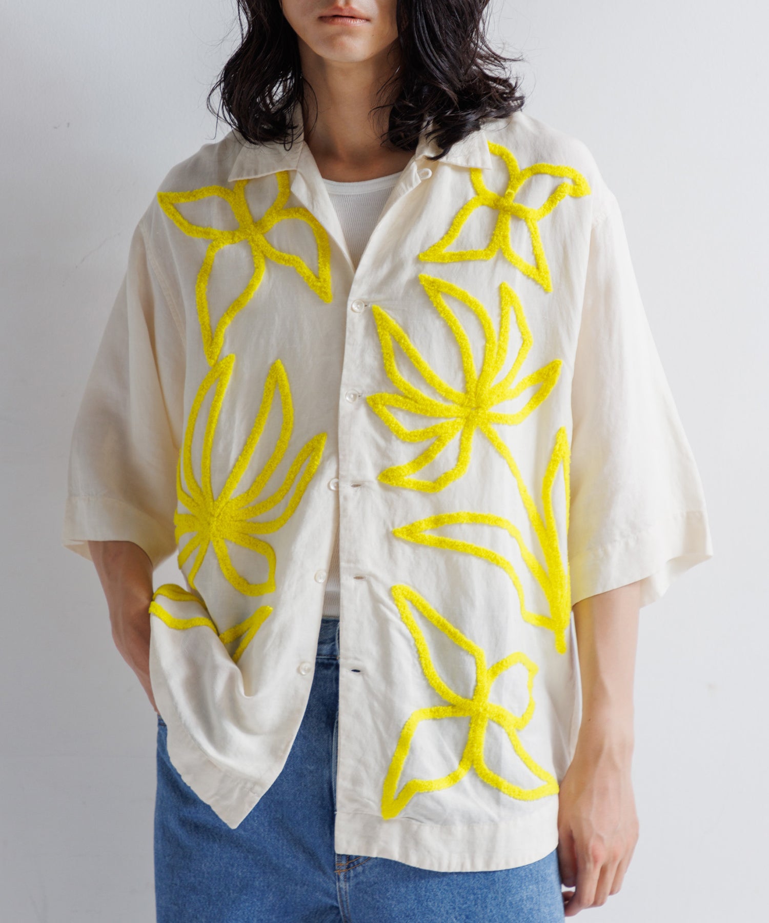 【MEN,WOMEN】LEIN ギザコットンリネンタオル刺繍シャツ