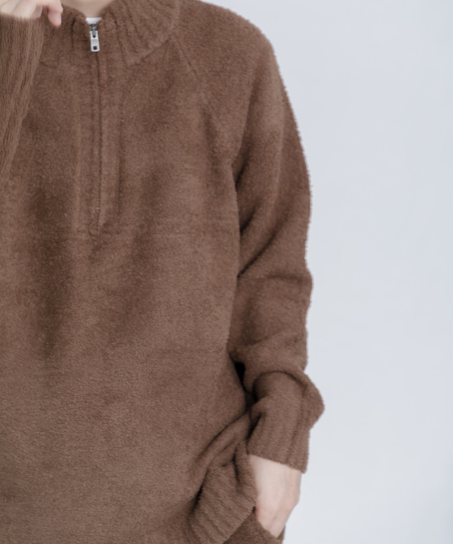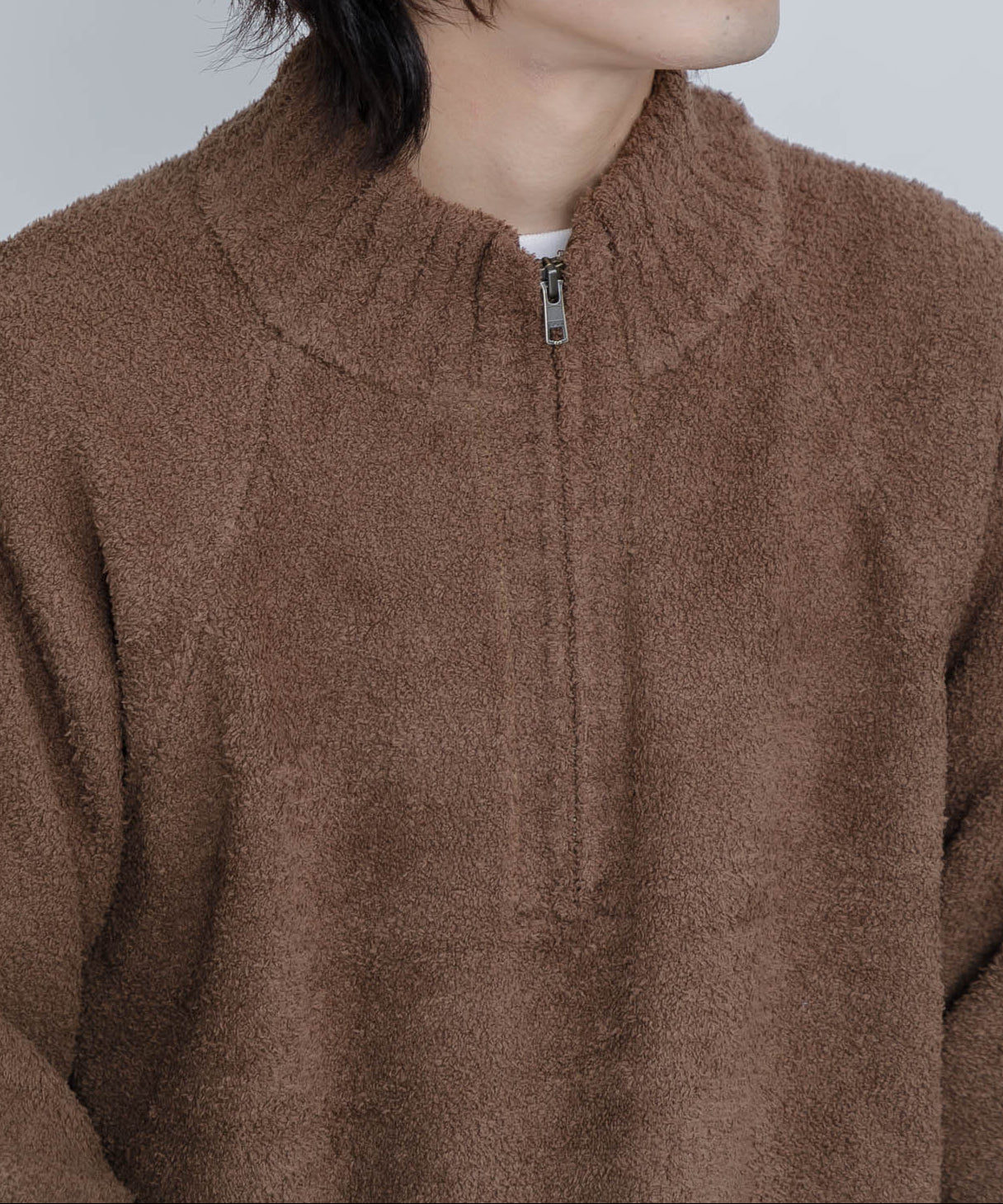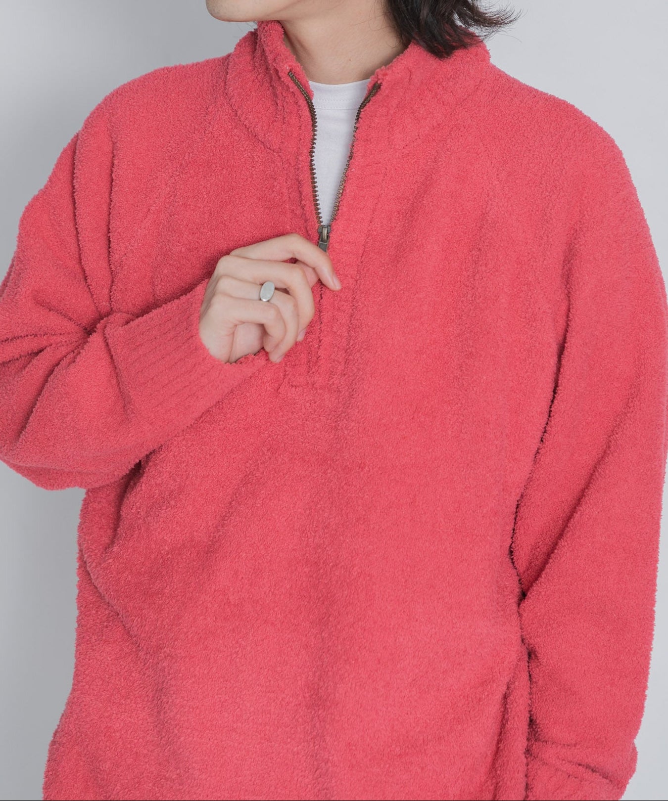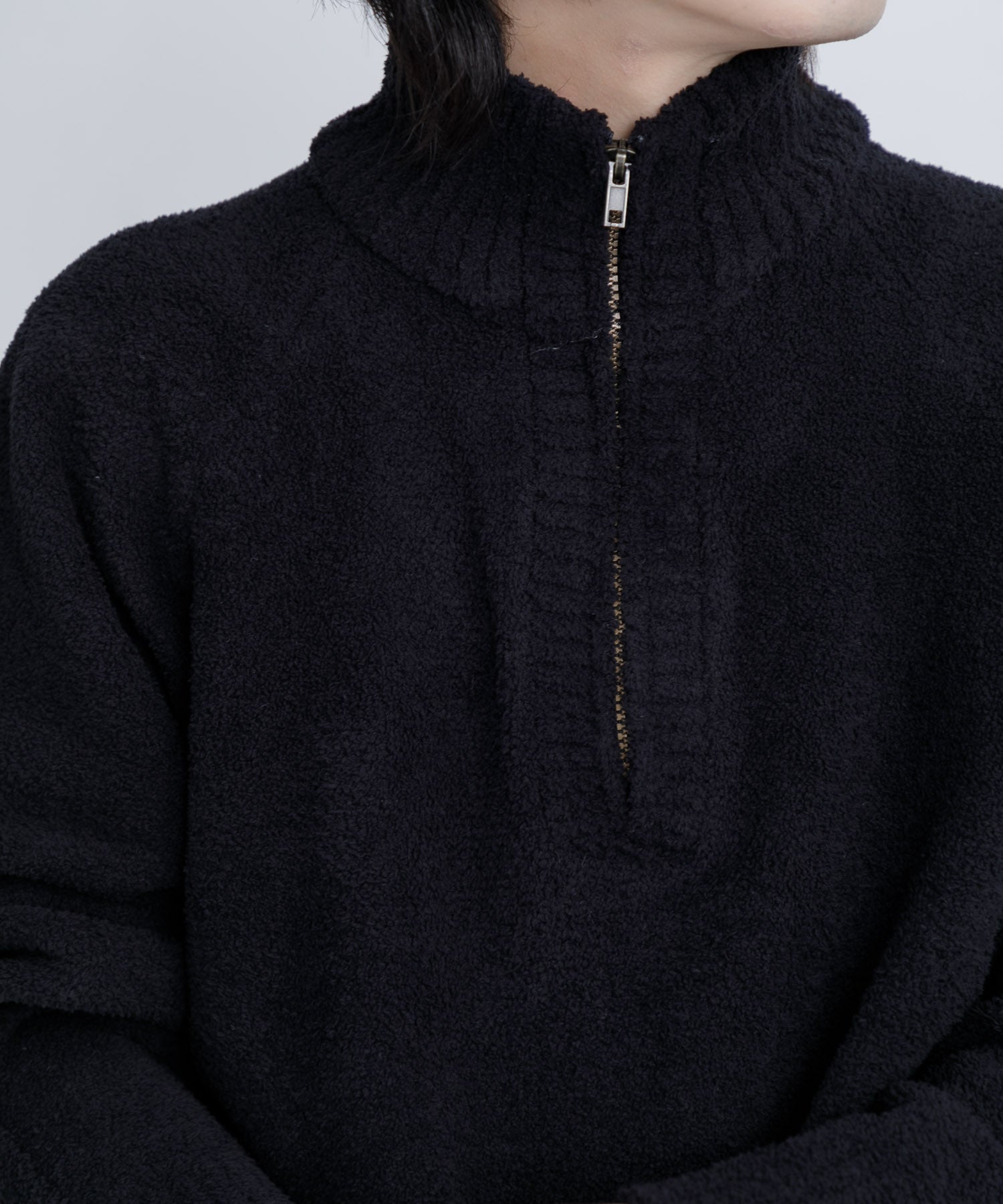 首元からの寒さを防ぐスタンドカラーで、風が冷たい季節にうれしいハーフジップトップス。