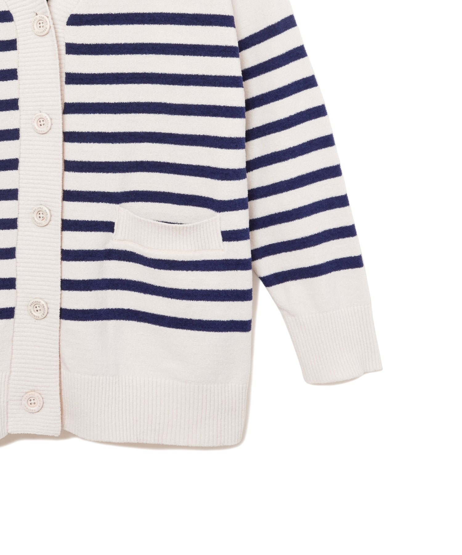 オリジナルピッチのパネルボーダーで、爽やかマリンテイストなカーディガン。