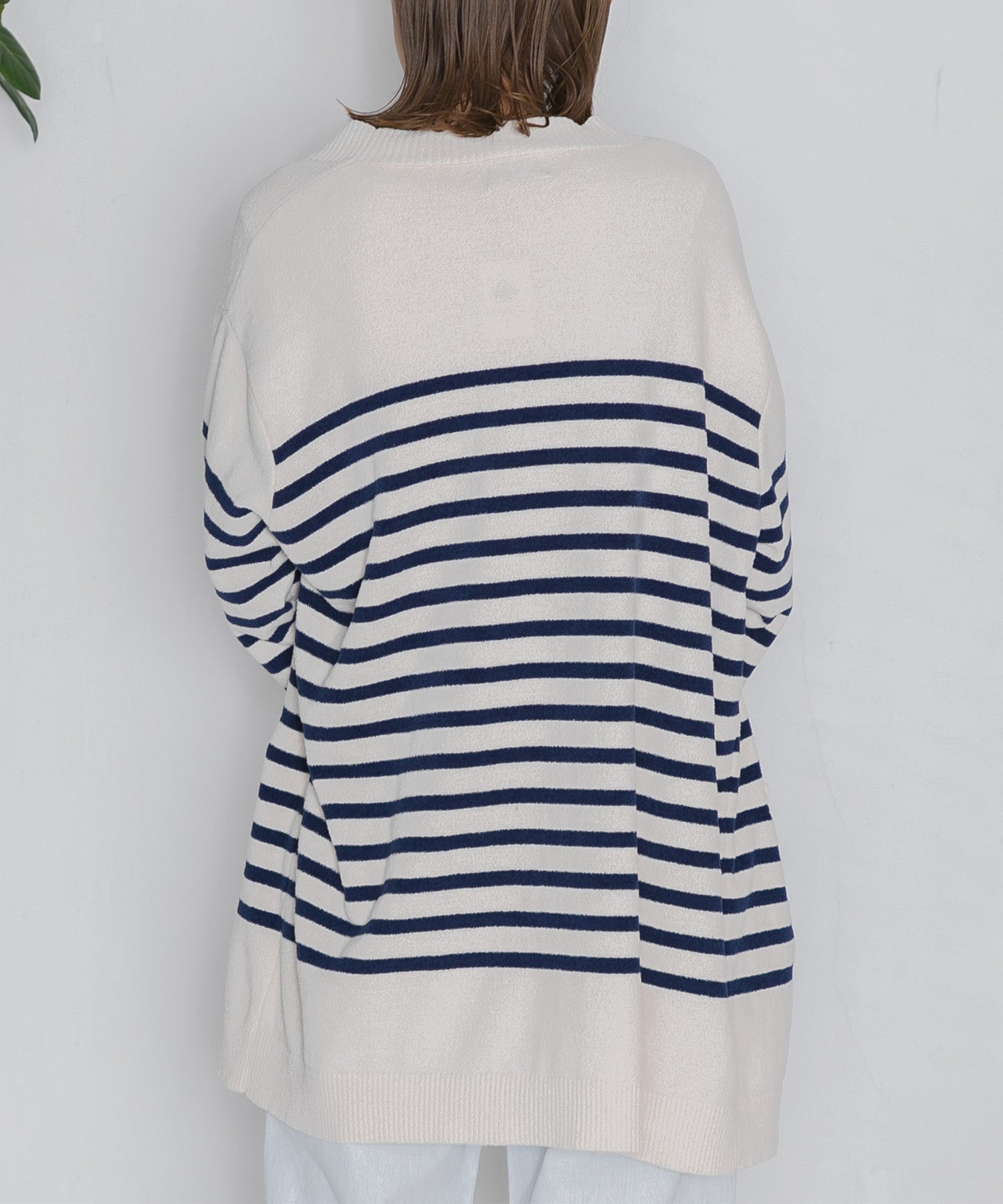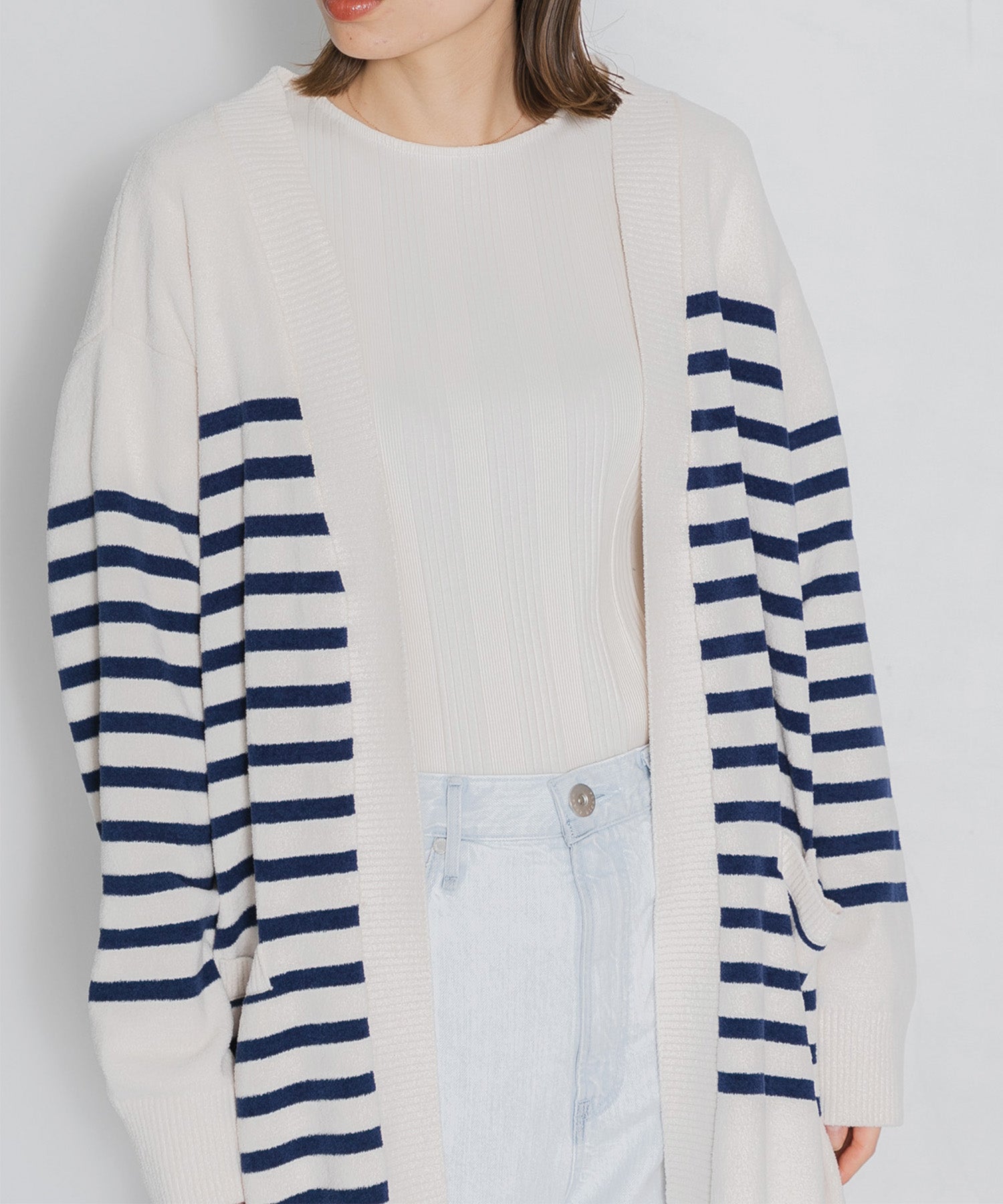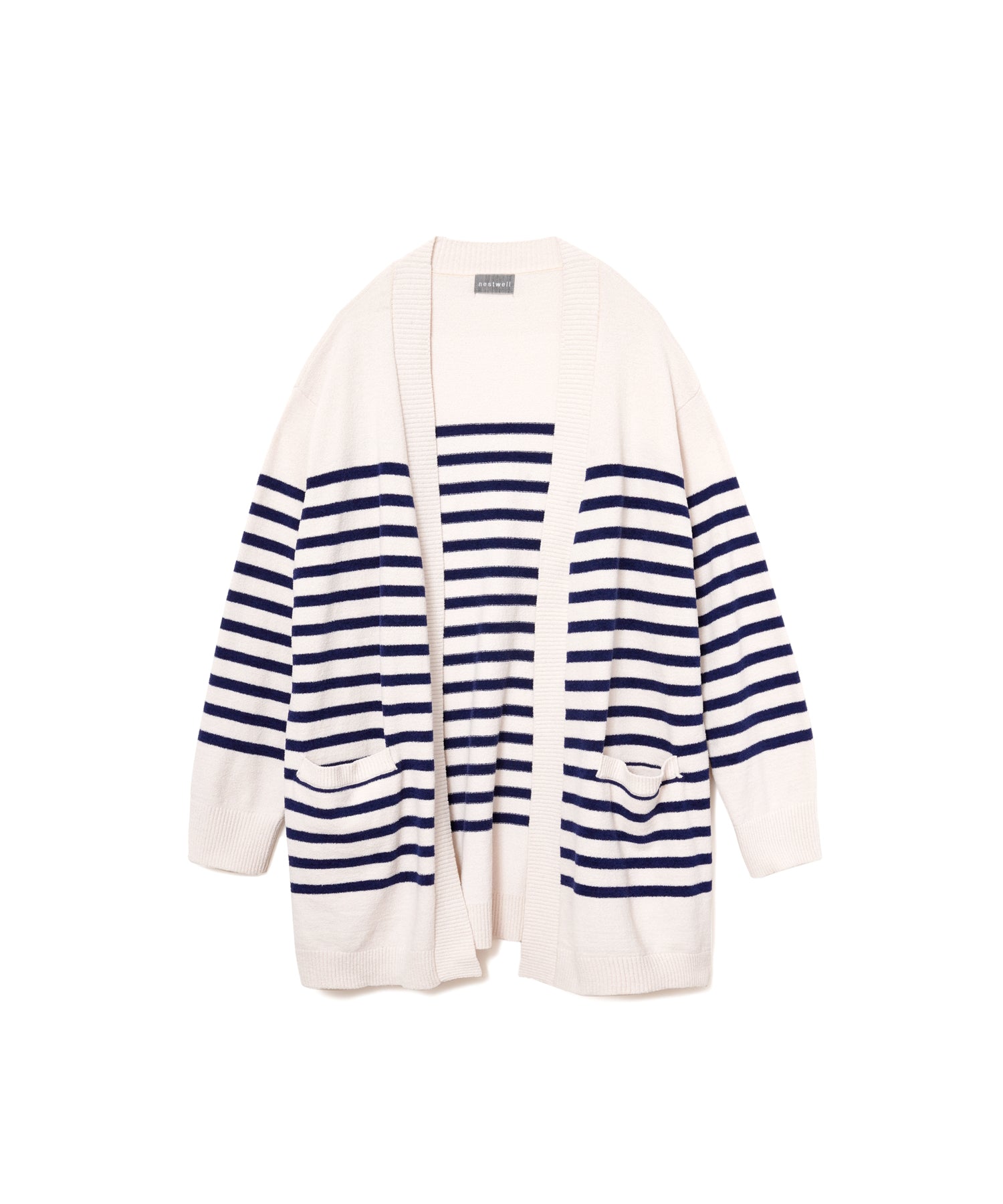 オリジナルピッチのパネルボーダーで、爽やかマリンテイストなガウンカーディガン。